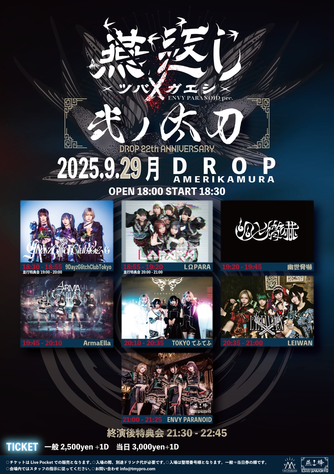 9/29 (月)ENVY PARANOID pre. 燕返し-ツバメガエシ-[ 弍ノ太刀 ] DROP 22th anniversary