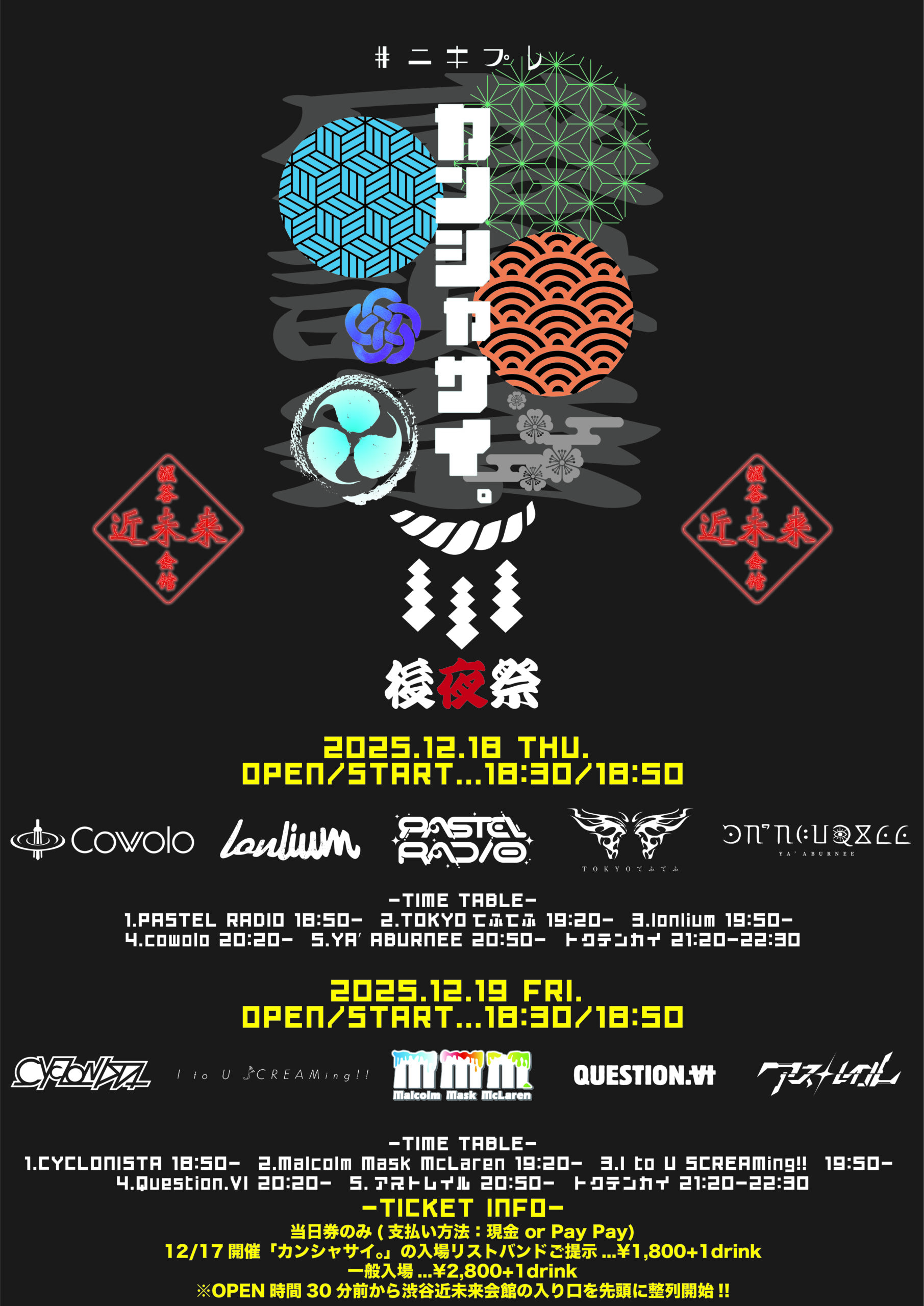 ▪️12/17開催『カンシャサイ。』リストバンド提示で¥1,800+1D