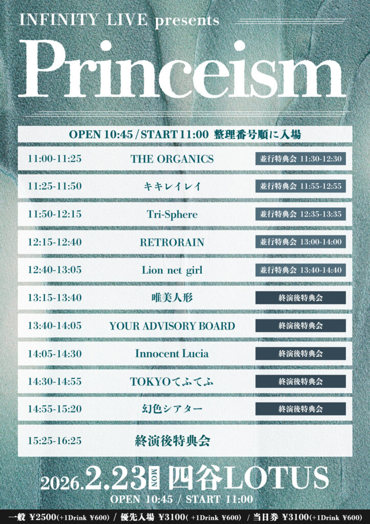 優先入場 ¥3100 / 一般 ¥2500 / 当日券 ¥3100