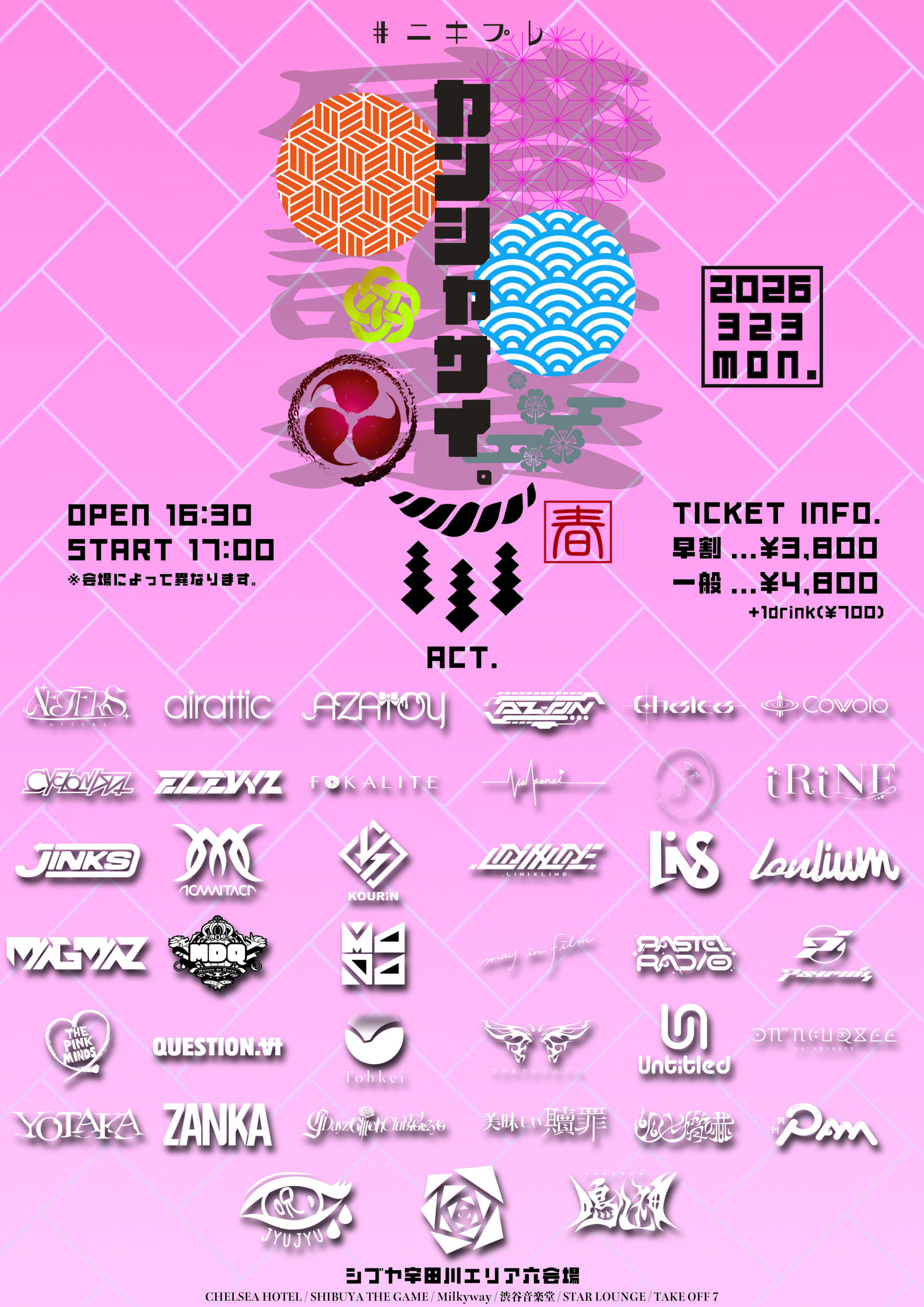 📍会場:渋谷宇田川エリア6会場(渋谷音楽堂 / 渋谷Milkyway / SHIBUYA THE GAME / STAR LOUNGE / CHELSEA HOTEL / TAKE OFF 7 )